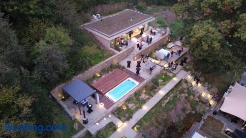 Homestorys Nature Resort - Lakeview Pavilion heeft uitzicht op het zwembad, en biedt accommodatie met een gedeelde lounge en een patio, op 18 km van station Aken Centraal.