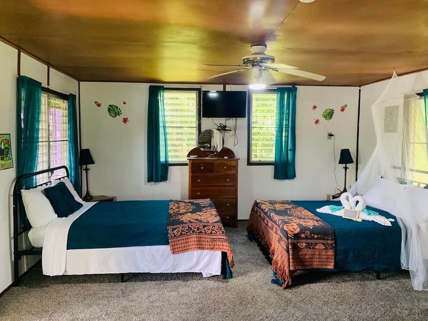 Je vindt River Bend Resort Belize in Ladyville. Bij Bacab Eco Park en Belize River geniet je van het natuurschoon van de omgeving, terwijl Museum of Nature Artistry en Museum of Belize hier twee van de culturele hoogtepunten zijn. Doe mee aan een leuke wateractiviteit, zoals snorkelen, of geniet van de buitenlucht en ga paardrijden. Bed & breakfast met gratis ontbijt en een 24-uurs receptie in LadyvilleDeze bed & breakfast beschikt naast een conciërgeservice over een stomerij/wasserijservice en een wasserij. Gratis continentaal ontbijt en gratis wifi in gemeenschappelijke ruimtes worden ook voorzien. Je vindt er ook een 24-uurs receptie, een gratis boodschappenservice en een spelletjesruimte. De huishoudservice is op verzoek beschikbaar. River Bend Resort Belize heeft 10 kamers met airconditioning die zijn voorzien van gratis mineraalwater en een haardroger. Alle kamers hebben een zitruimte met een bureau. Alle kamers in deze bed & breakfast met 3 sterren hebben kitchenettes met een koelkast, een magnetron en kookgerei, borden en bestek. Elke badkamer is voorzien van een douche en gratis toiletartikelen. Gasten kunnen gratis gebruik maken van wifi. Elke smart-tv van 32 inch heeft kabelzenders en Netflix. Een schoonmaakservice is dagelijks beschikbaar. De onderstaande recreatieve activiteiten vind je ter plaatse of in de directe omgeving. Mogelijk zijn toeslagen van toepassing.