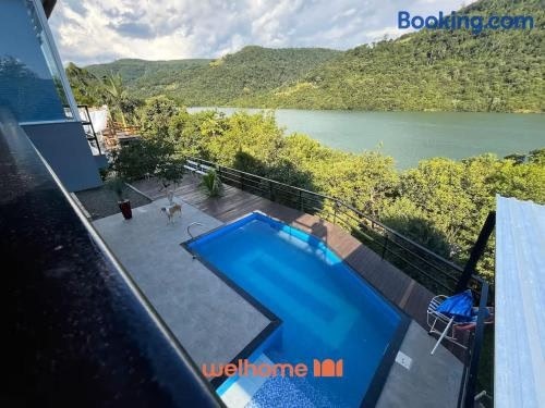 Casa em Chapeco com Piscina Privativa e Vista Lago bevindt zich in Nonoai, en biedt accommodatie met een privézwembad en gratis WiFi. Deze accommodatie met uitzicht op de bergen heeft een patio en een zwembad.