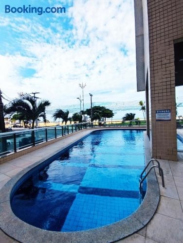 Flat Frente Mar - Beira Mar Fortaleza ligt in Fortaleza, en biedt accommodatie met gratis WiFi, airconditioning, een fitnesscentrum en toegang tot een tuin met een buitenzwembad.