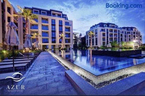 Azur Beach Apartment heeft een balkon en bevindt zich in Varna, op maar 10 minuten lopen van Strand Bunite en 500 meter van Varna Zoo. Er zijn een tuin, een terras en gratis WiFi in de hele accommodatie en je hebt uitzicht op de tuin.