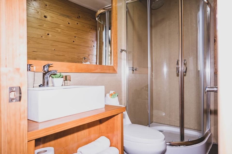 Hotel Puerto Madera ligt vlak bij het strand in Pelluhue. Bewonder de natuurlijke schoonheid van de omgeving bij Reserva Nacional Federico Albert en Playa Pelluhue. Maak van de gelegenheid gebruik om de buitenactiviteiten in de omgeving te ontdekken, zoals wandel- en fietsroutes afleggen. Hotel met gratis ontbijt en een sauna in PelluhueDit rookvrije hotel beschikt over een sauna, een spa en een conferentieruimte. Lokaal ontbijt, gratis wifi in gemeenschappelijke ruimtes en gratis parkeerplaatsen worden ook voorzien. Je vindt er ook een stomerij/wasserijservice, een tuin en een banketzaal. Hotel Puerto Madera heeft 8 kamers met een kluis en gratis toiletartikelen. Elke kamer heeft een balkon. Elke lcd-televisie van 32 inch heeft satellietzenders. Elke badkamer heeft een bad/douchecombinatie met een regendouche. Een strijkplank/strijkijzer en een haardroger zijn op verzoek beschikbaar. Een schoonmaakservice is dagelijks beschikbaar. Recreatieve voorzieningen van dit hotel bestaan onder andere uit een sauna. De onderstaande recreatieve activiteiten vind je ter plaatse of in de directe omgeving. Mogelijk zijn toeslagen van toepassing.
