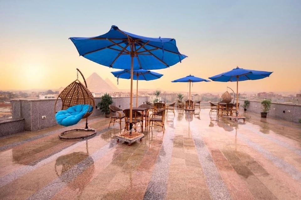 Blue Pyramids Eyes Hotel bevindt zich in Caïro, op 19 minuten lopen van Piramides van Giza, en biedt accommodatie met een tuin, gratis privéparkeren, een gedeelde lounge en een terras. Dit hotel met 3 sterren biedt roomservice en een geldautomaat.