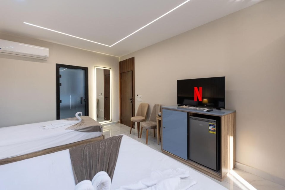 Khattab pyramids hotel is gelegen in de wijk Al Haram in Gizeh. De accommodatie heeft een gunstige ligging in de bergen. Culturele hoogtepunten die je hier kunt bezoeken zijn onder andere Groot Egyptisch Museum en Egyptisch Museum. Een aantal andere bijzondere bezienswaardigheden zijn Piramiden van Gizeh en Piramide van Cheops. Dierentuin Giza en Botanische tuinen van Orman zijn ook zeker het bezoeken waard. Hotel met gratis ontbijt, in de buurt van Piramiden van GizehDit rookvrije hotel beschikt over een wasserij, een 24-uurs receptie en een snelle incheckservice. Gratis uitgebreid ontbijt, gratis wifi in gemeenschappelijke ruimtes en een gratis valetparkeerservice worden ook voorzien. Je vindt er ook een snelle uitcheckservice en een geldautomaat/bankservice. Khattab pyramids hotel heeft 16 kamers met airconditioning die zijn voorzien van een open haard en een minibar. Deze kamers met een zitruimte zijn in eigen stijl ingericht en gemeubileerd en hebben een slaapbank en een bureau. Alle bedden hebben donzen dekbedden en luxe beddengoed. Er is een kussenmenu beschikbaar. Er is een televisie met premium satellietzenders. Elke badkamer is voorzien van een douche, badjassen, gratis toiletartikelen en een haardroger. Gasten kunnen gratis gebruik maken van wifi. Ook heeft elke kamer gratis mineraalwater en een ventilator.