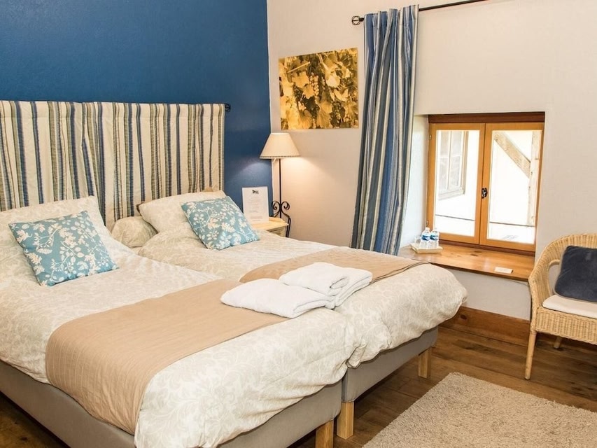 Les Portails Bleus is gelegen in Azé en biedt gratis WiFi, een tuin, een gedeelde lounge en een terras. Er is een volledig uitgeruste eigen badkamer met douche en een haardroger. Je kunt bij de bed & breakfast genieten van een continentaal ontbijt.