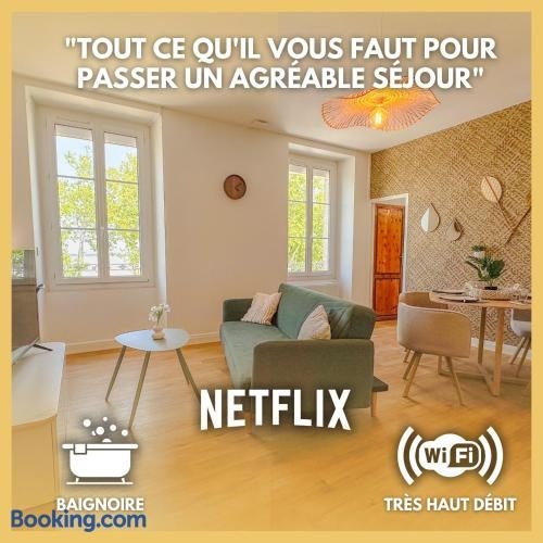 Situated in Pauillac, Pauillac côté confort 2pièces face à la Gironde has recently renovated accommodation 50 km from Bordeaux International Fair. Both free WiFi and parking on-site are accessible at the apartment free of charge.