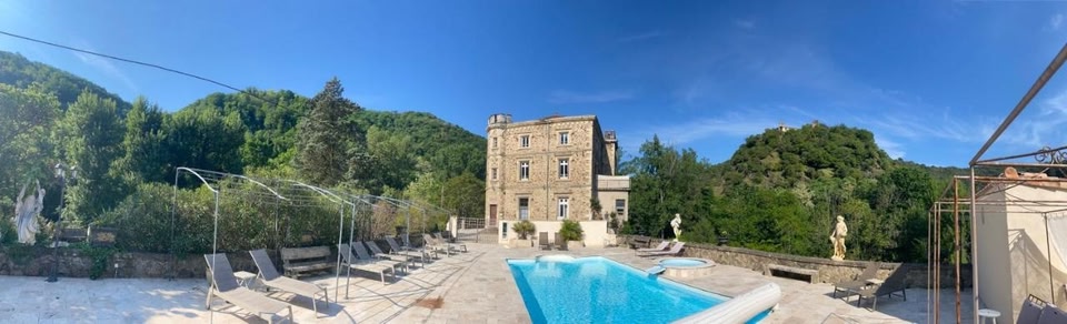 Suite romantique d'Isoarde des Baux - Château de Rochetaillée heeft een seizoensgebonden buitenzwembad, een tuin, een privéstrand, en biedt accommodatie in Saint-Uze met gratis WiFi en uitzicht op het zwembad.