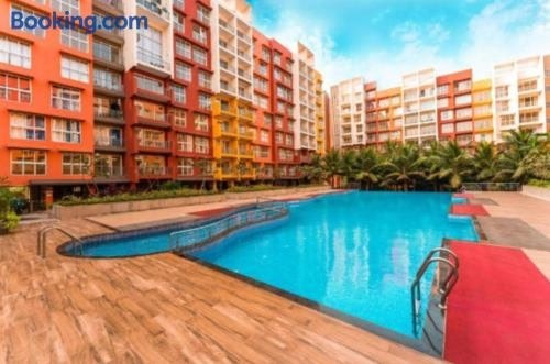 Goodstay Sunlit Bliss Cozy2BHK with Luxe Touch704 bevindt zich op 25 km van treinstation van Margao, en biedt accommodatie in Dabolim met toegang tot een sauna. Dit appartement heeft een privézwembad, een tuin en gratis privéparkeren.