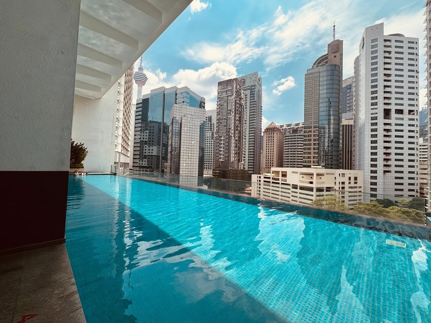 1 Bukit Ceylon, Bukit Bintang, 2Pax bevindt zich in Kuala Lumpur en beschikt over accommodatie met airconditioning en een privézwembad, uitzicht op de stad en een balkon.