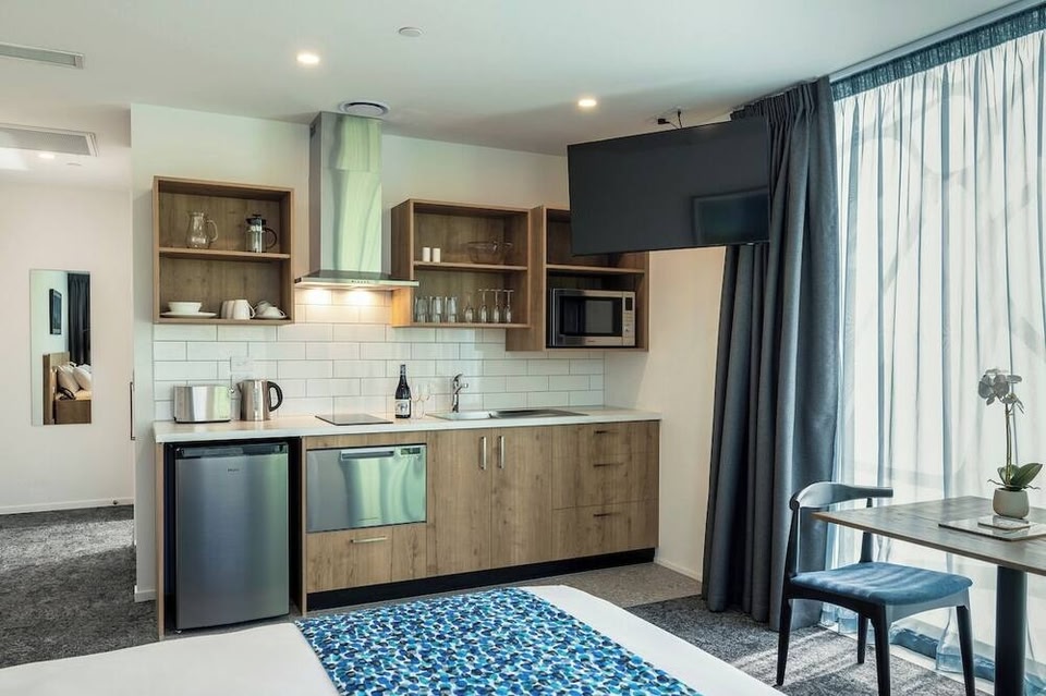 Quest on Cambridge is in het stadscentrum in Christchurch te vinden. Als je zin hebt in een leuke activiteit, kun je een kijkje nemen bij Lyttelton Harbour. Geniet je liever op een rustige manier van de natuur? Ga dan naar Hagley Park of Sumner Beach. Wil je tijdens je bezoek graag van een evenement of wedstrijd genieten? Bekijk wat Wilding Park of Addington Raceway op het programma heeft staan. Aparthotels met kitchenettes, op 6 minuten lopen van Hagley ParkDit rookvrije aparthotel heeft niet alleen parkeerplaatsen, maar ook een wasserij en gratis wifi in gemeenschappelijke ruimtes. Je vindt er ook een banketzaal. Elk aparthotel heeft een wasmachine/droger en een kitchenette met kookplaat en magnetron. Een waterkoker, gratis theezakjes/oploskoffie en gratis lokale gesprekken zijn enkele van de overige voorzieningen. Quest on Cambridge heeft 84 kamers met een wasmachine/droger en een strijkplank/strijkijzer. Alle kamers in dit aparthotel met 3 sterren hebben kitchenettes met een kookplaat en een magnetron. Elke badkamer is voorzien van een bad of douche. Zakelijke voorzieningen zijn onder meer bureaus en een telefoon met gratis lokale gesprekken (hiervoor kunnen beperkingen gelden). Een schoonmaakservice is dagelijks beschikbaar.