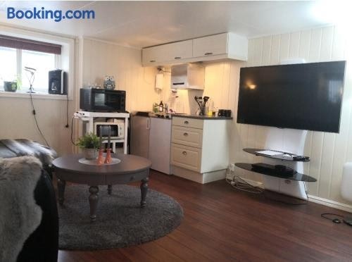 Beachfront Studio Apartment with Stunning ViewsLuxurious Amenities: This studio apartment offers a comfortable stay with a terrace overlooking the sea, a fully equipped kitchenette, and modern living room with a flat-screen TV. Enjoy the convenience of free WiFi, private parking, and thoughtful touches like soundproofing for added privacy.Prime Location: Nestled in Andenes, guests have direct access to the beach and whale center. Outdoor dining on the patio allows you to soak in the picturesque views while relishing delicious meals.Convenience and Comfort: With towels, bed linen, and a private entrance provided, your stay is made hassle-free. Experience tranquility and relaxation in this seaside retreat.Experience seaside luxury at Studioleilighet ved stranden og hvalsenteret. Sentrum. Book now for an unforgettable stay!