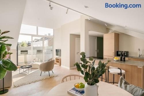 Løkka Suites I Penthouse with Private Rooftop I 2-Bedroom with Double Queen Room & 2 Bathrooms heeft uitzicht op de stad, en biedt accommodatie met een tuin en een patio, op 18 minuten lopen van station Oslo Centraal.