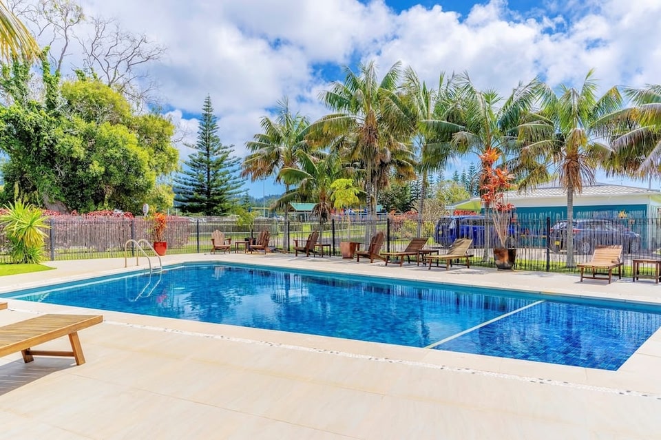 Aloha Apartments bevindt zich in Burnt Pine en biedt accommodatie met een buitenzwembad dat het hele jaar door open is, een tuin en een terras.