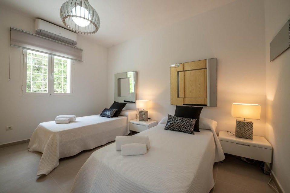 Can Garchet White Ibiza is gelegen op 11 km van Jachthaven Botafoch, en biedt accommodatie in Sant Jordi met toegang tot een seizoensgebonden buitenzwembad, een terras, en een 24-uursreceptie.