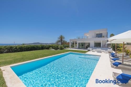 Villa con vistas al mar heeft een buitenzwembad, een tuin, een terras, en biedt accommodatie in Sant Jordi met gratis WiFi en uitzicht op de zee. Deze accommodatie biedt een privézwembad en gratis privéparkeren.
