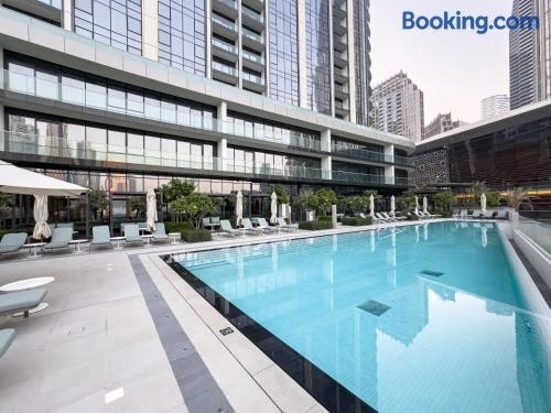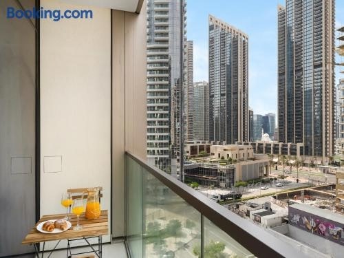 Elegant 1BR I 1min walk to Burj Khalifa & Fountain is gelegen in het centrum van Dubai, en heeft een buitenzwembad, een tuin, gratis WiFi, en gratis privéparkeren. Gasten profiteren van een balkon en een terras.