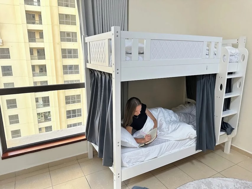 Happy Dom Family ligt vlak bij het strand in de wijk Dubai Marina in Dubai. Als je tijdens je verblijf lekker wilt winkelen, zijn The Walk en Winkelcentrum Ibn Battuta wel een bezoekje waard, terwijl reizigers die het liefst de populairste bezienswaardigheden uit de omgeving willen bewonderen hun hart bij Wild Wadi Water Park en Aquaventure kunnen ophalen. Wil je tijdens je bezoek graag van een evenement of wedstrijd genieten? Bekijk wat Jebel Ali Race Course of Dubai International Stadium op het programma heeft staan. Maak van de gelegenheid gebruik om de buitenactiviteiten in de omgeving te ontdekken, zoals tokkelen. Zandstrand en fitnessfaciliteiten, dicht bij Marina BeachDit hostel beschikt over een buitenzwembad, fitnessfaciliteiten en parkeerplaatsen. Wifi in gemeenschappelijke ruimtes is gratis. Je vindt er ook een magnetron in de gemeenschappelijke ruimte, een koelkast in de gemeenschappelijk ruimte en een stomerij/wasserijservice. Happy Dom Family heeft 36 kamers met airconditioning die zijn voorzien van een haardroger. De keukens beschikken onder meer over een koelkast, een kookplaat, een magnetron en kookgerei, borden en bestek. Elke badkamer is voorzien van een douche en een bidet. In dit hostel in Dubai is wifi gratis, met een snelheid van 500+ Mbps (voor 6+ personen of 10+ toestellen). Dagelijks wordt een huishoudservice aangeboden en op verzoek is een strijkplank/strijkijzer beschikbaar. Recreatieve voorzieningen van dit hostel bestaan onder andere uit een buitenzwembad en fitnessfaciliteiten. De onderstaande recreatieve activiteiten vind je ter plaatse of in de directe omgeving. Mogelijk zijn toeslagen van toepassing.