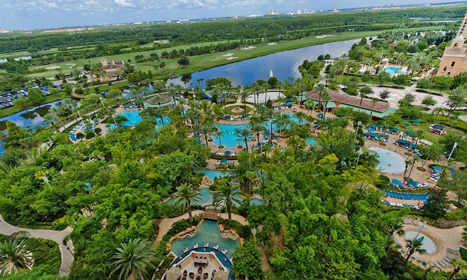 Dit tropische resort in Orlando biedt vervoer naar lokale attractieparken, zoals Walt Disney World, Universal Studios en SeaWorld. Tot de faciliteiten van het hotel behoren een golfbaan, een buitenzwembad en een gedeelte met een stroomversnelling.